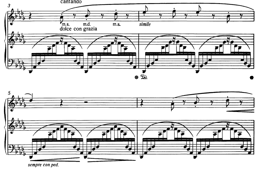 Liszt was a pianist and composer from the Romantic Era (he lived for much of the 1800s), and arguably one of the greatest pianists of all time. This piece is the third of his 3 Concert Etudes. The title translated means “A sigh”. It starts with a melody that is split between the two hands, with the left hand crossing over to play some of the melody.