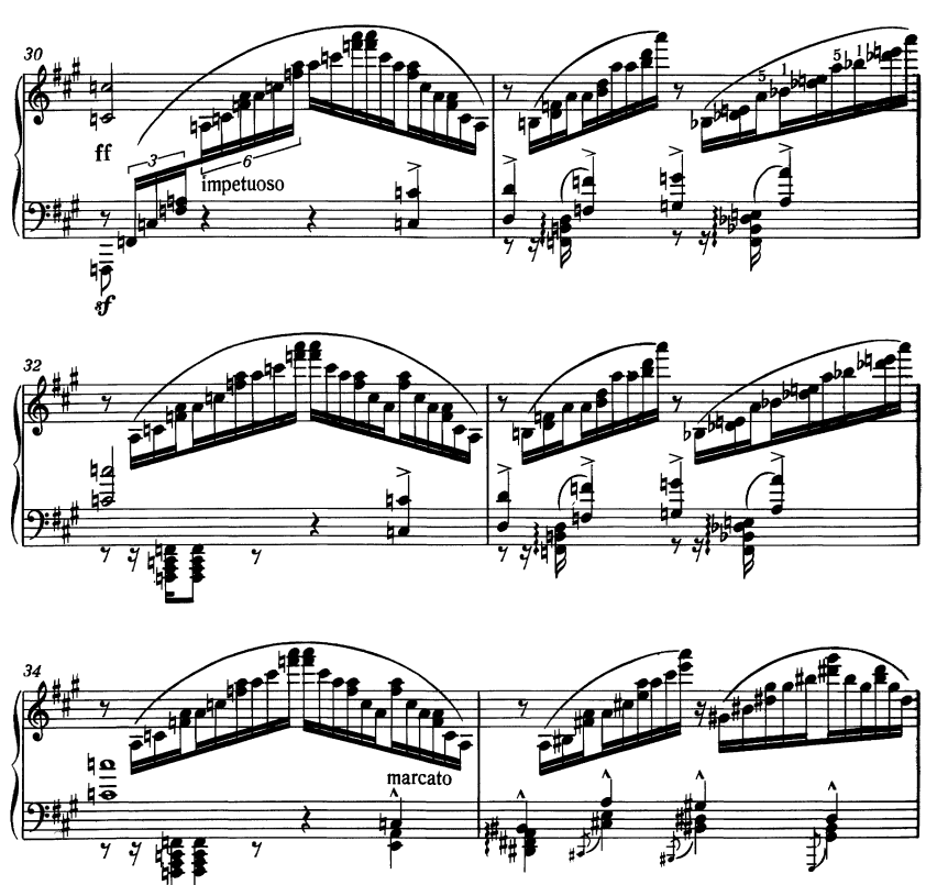 This even more difficult section starts at 1:38, yet the pianist makes it look easy: