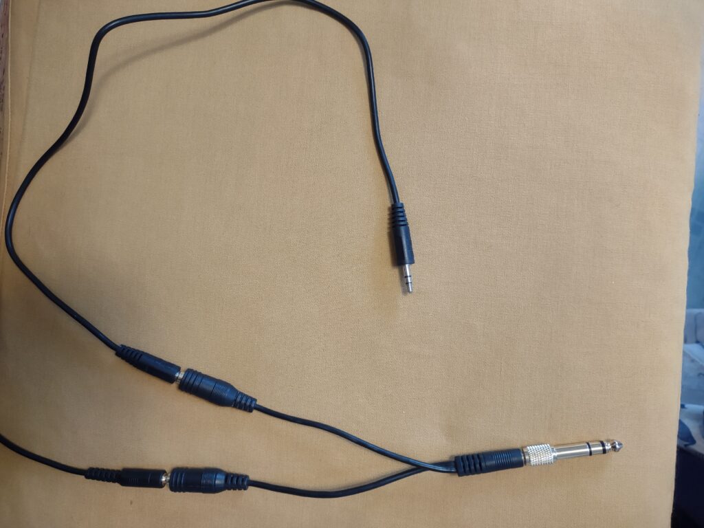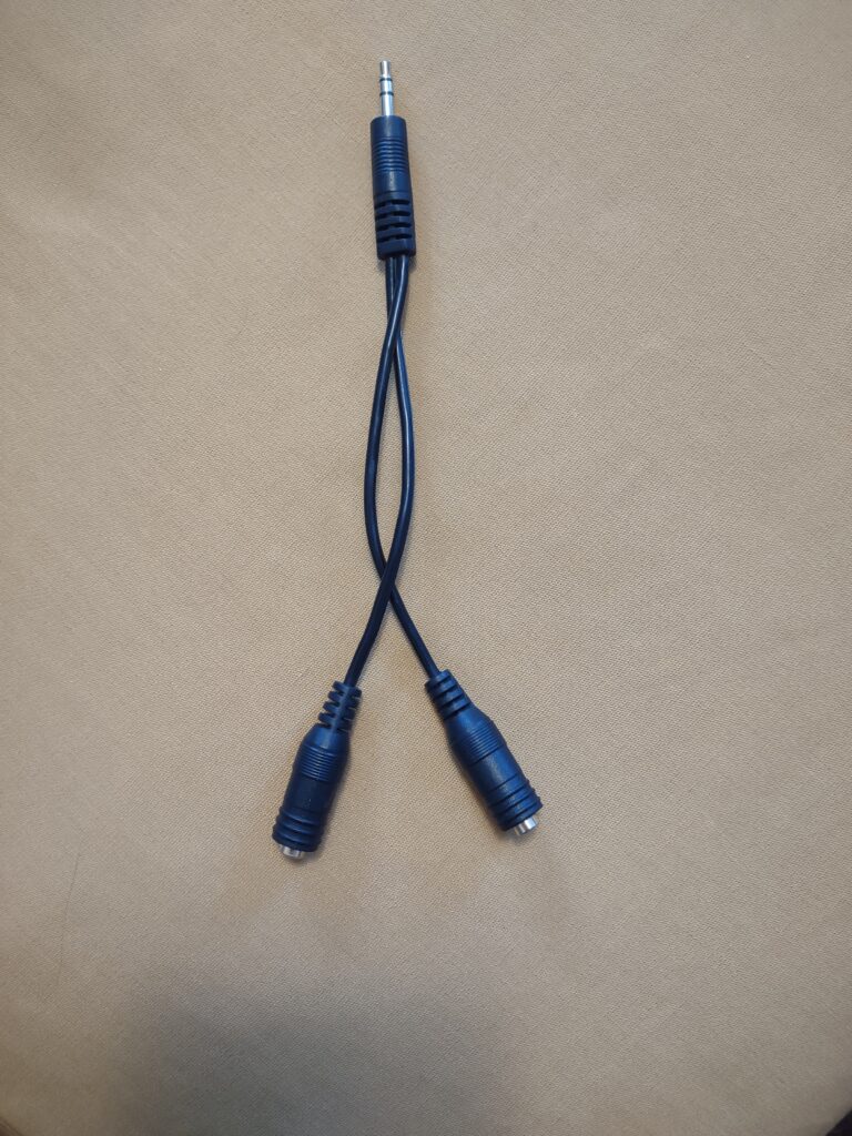 Plug the single end of the splitter cable into the headphone port so that the two ends are hanging out. On my keyboard this port is on the front.
