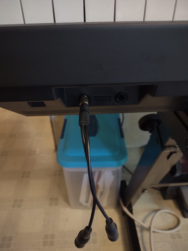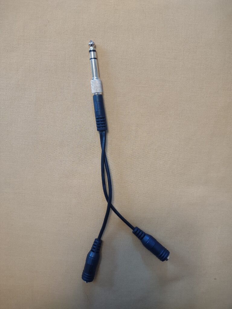 Step 1: Plug splitter cable into headphone port on piano keyboard