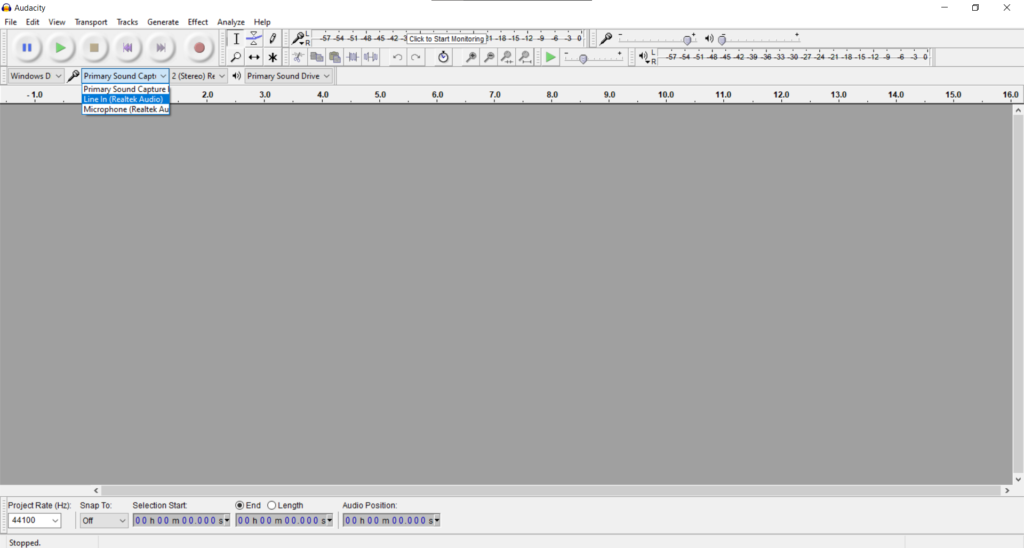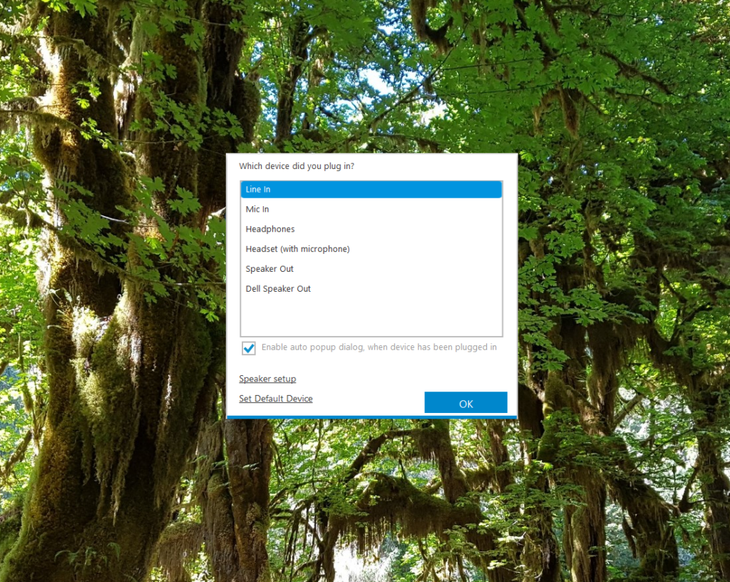 When you plug in the line in cable into the headphone port, a window will pop up (on Windows) and ask you how you want to use it. Select line in and click OK: