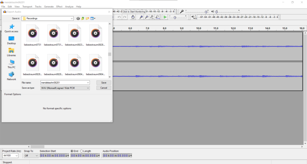 For this type of video, you don’t really need to save the audio as a project unless you might need to go back and edit the audio.